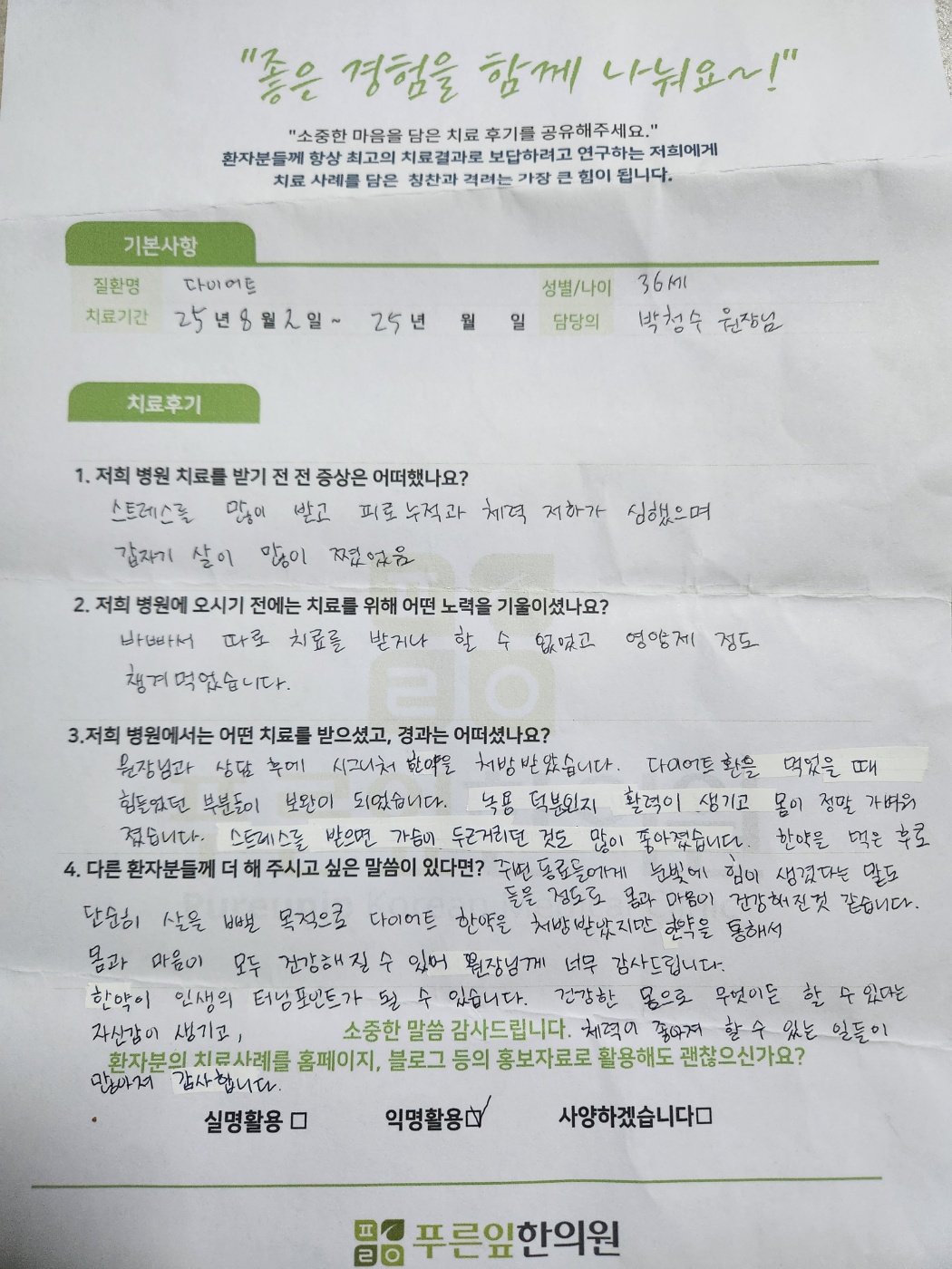 출산 후 관절통과 찬 기운으로 힘들어하시던 환자분의 치료 후기입니다.